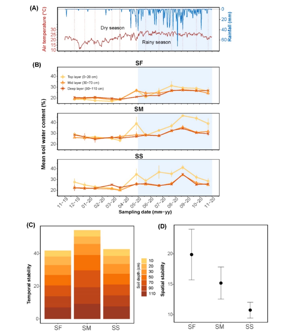 相关结果以Edaphic and climatic effects on soil water dynamics and infiltration patterns in tropical rainforests为题,发表在Geoderma期刊上。该研究得到了版纳植物园“十四五”规划、国家基金、云南省基金-重点、国家留学基金-联培项目等资助,感谢版纳植物园公共技术中心、版纳生态站的帮助。